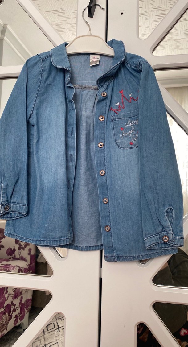 Nakışlı Düğmeli Kız Kot Gömlek