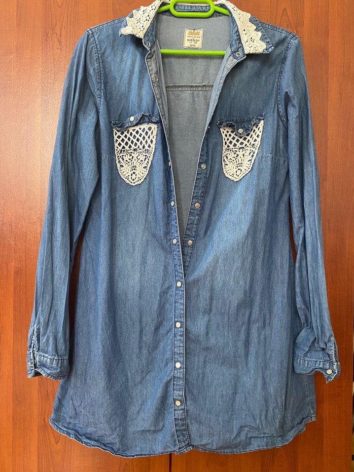 Nakışlı cepleri ve yakası olan, düğmeli, uzun kollu kot gömlek. Rahat günlük kullanıma uygun. 42 beden.