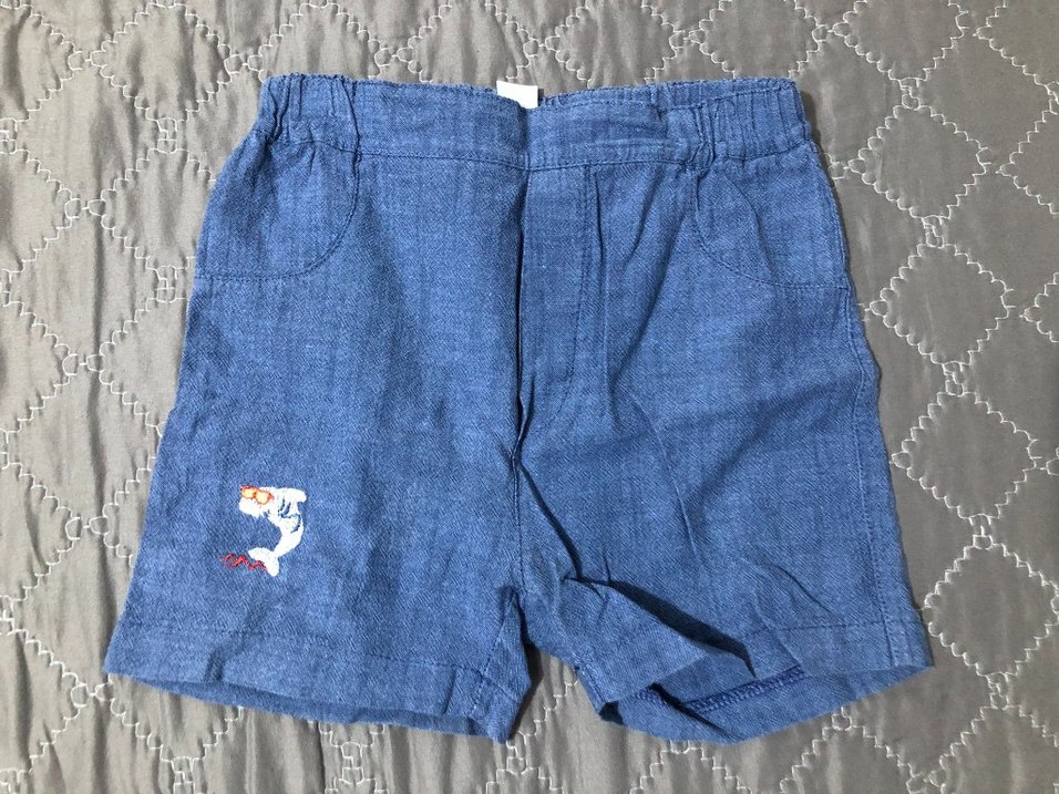 Düğmeli, nakışlı ve bol kesim mavi kot erkek şort. Rahat ve renkli tasarımıyla sokak stili için uygun. 2 yaş