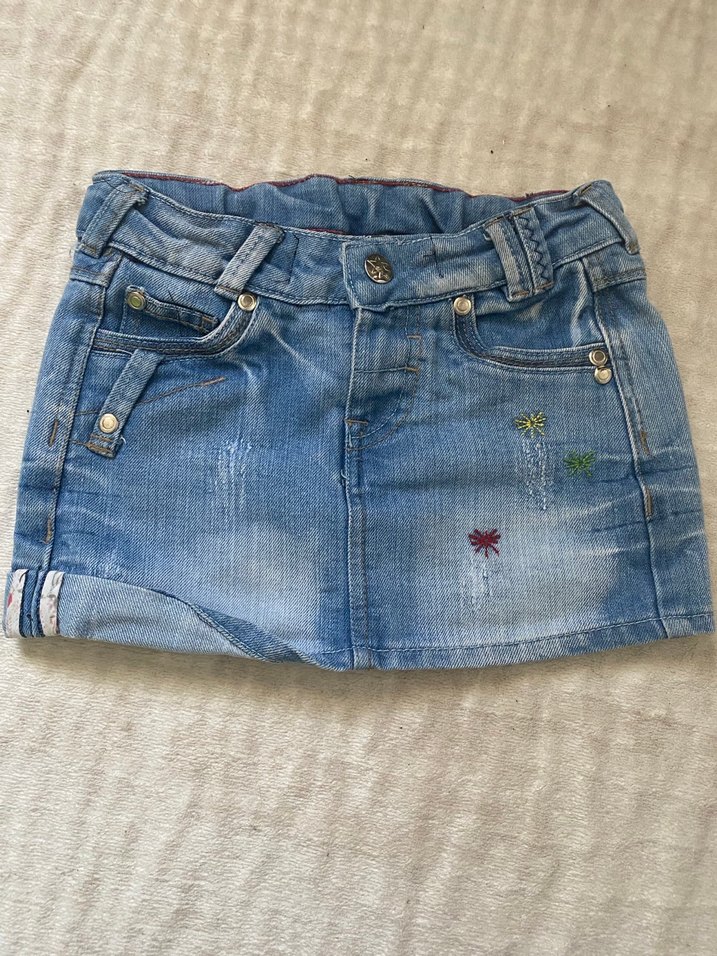 Nakışlı Düğmeli Mavi Kot Etek