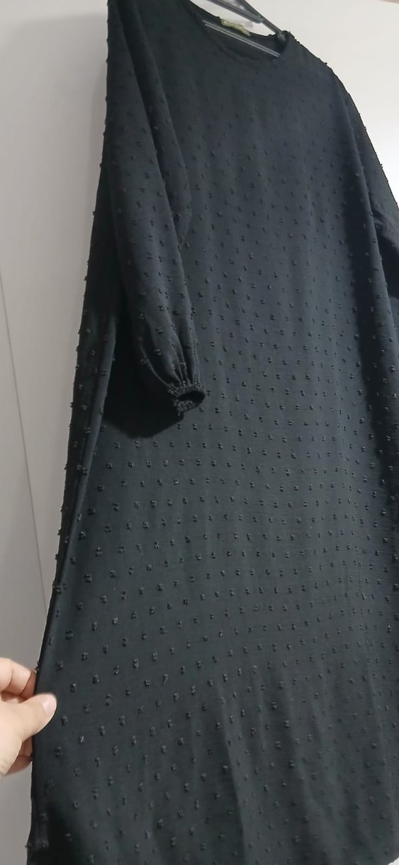 Siyah uzun tunik, yuvarlak yaka ve uzun kolludur. Düğmeli ve nakışlı dokusu ile sade, bol kesim ve günlük kullanıma uygundur.