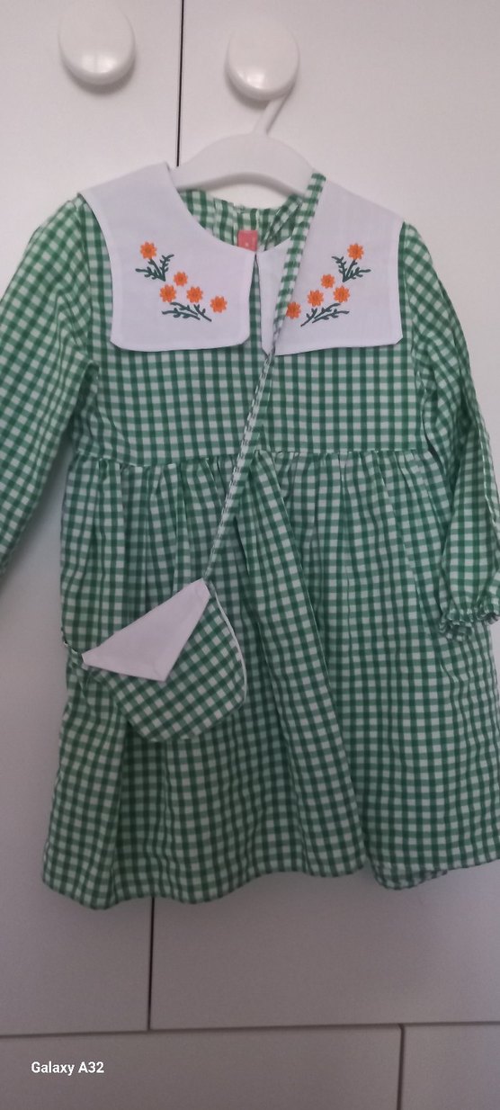 Nakışlı, Düğmeli, Uzun Kollu Kız Elbisesi
