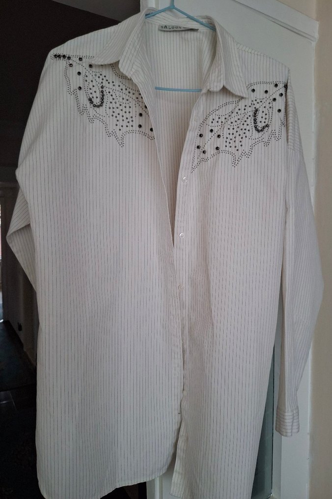 Pamuk kumaştan, düğmeli ve uzun kollu beyaz gömlek. Yaka çevresinde nakış detayları bulunur. Bohem tarz için uygun, bol kesim ve yakalıdır.