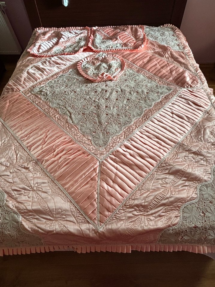 Nakışlı el yapımı Pembe Yatak Örtüsü