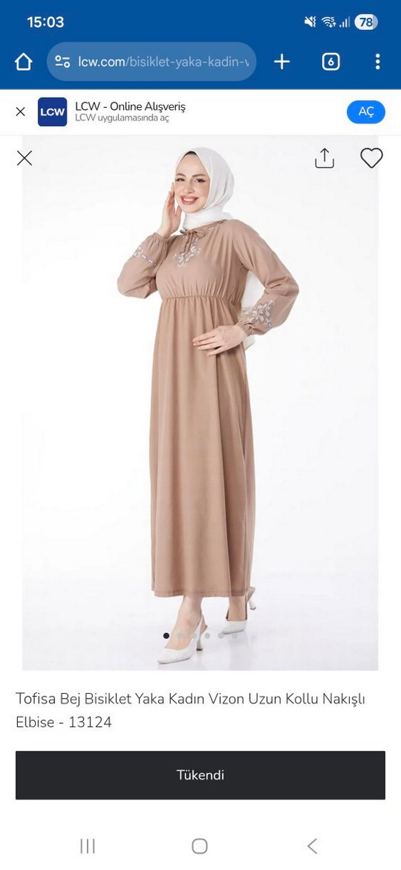 46 beden, vizon renginde, göğüs altından lastikli, bisiklet yaka, yakasında ip var, kolu lastikli, nakışlı uzun elbise, tesettüre uygun, tofisa ürünü, sıfır