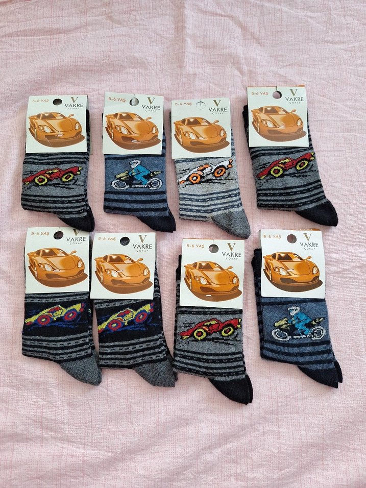 3 yaş Nakışlı araba ve motosiklet desenli, çizgili desenli gri erkek çocuk çorapları. Farklı bedenlerde ve canlı renklerde. ürün günlük kullanıma uygun sipariş ettiğiniz takdirde 8 adet gönderilecektir.