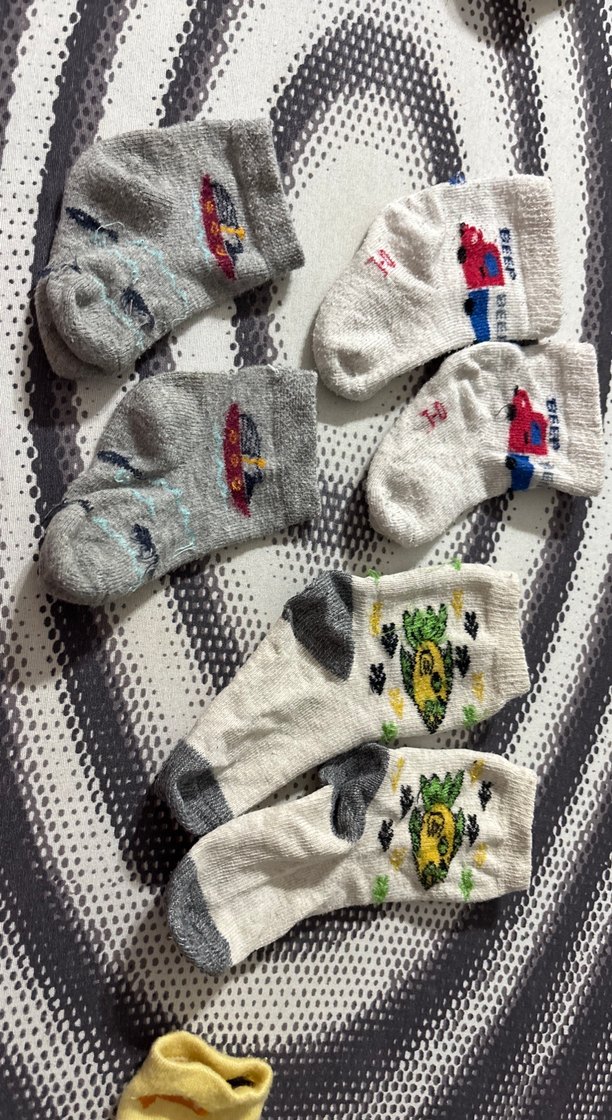 Erkek çocuk çorapları, çeşitli gri ve beyaz tonlarda nakışlı desenlere sahip, yumuşak ve rahat bir yapıya sahiptir.