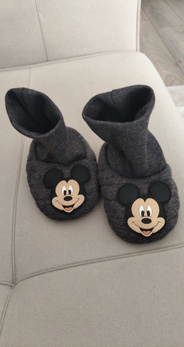 Nakışlı desenli, gri renkli, yumuşak ve sıcak kumaştan örme erkek çocuk terliği. Rahat sokak stiline uygun.