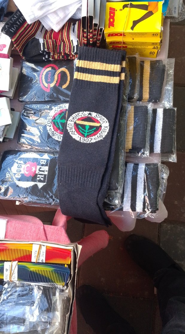 Nakışlı desenlere sahip, koyu renkli, çok renkli ve midi boy normal uzunlukta, atletik tarza uygun erkek çorapları.