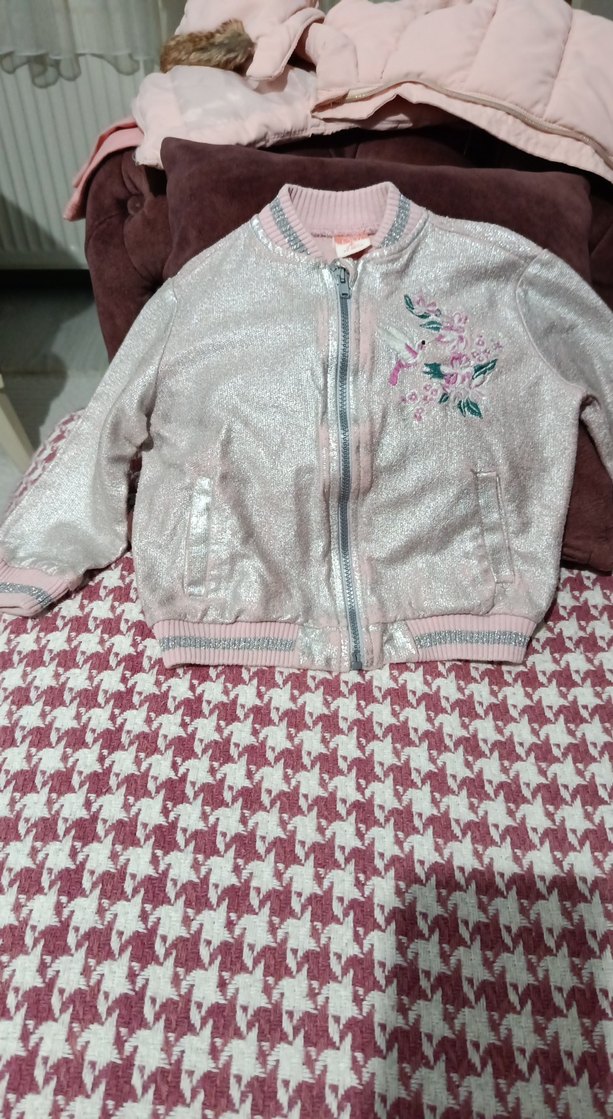 Pembe kız çocuk ceketi, nakışlı detaylı ve fermuarlı. Salaş kesim, bisiklet yaka ve yumuşak dokulu, sokak stiline uygun.