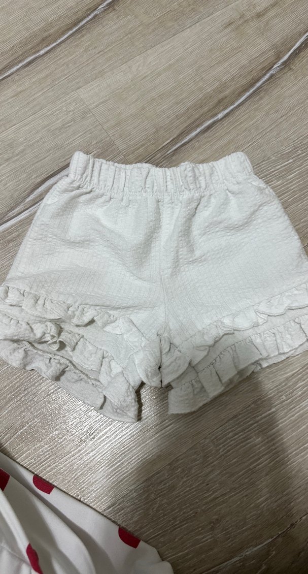 Nakış işlemeli, fırfırlı beyaz keten kız şortu. Rahatlık için lastikli bel ve bol kesim özelliklerine sahiptir. Sokak stili için uygundur. 9-12