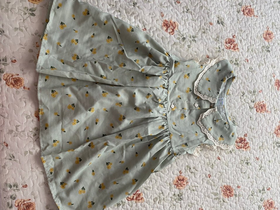 kumaş üzerine sarı nakışlı çiçek desenleri olan, fırfırlı ve yakalı, salaş kesim bohem tarzda kolsuz kız elbisesi.