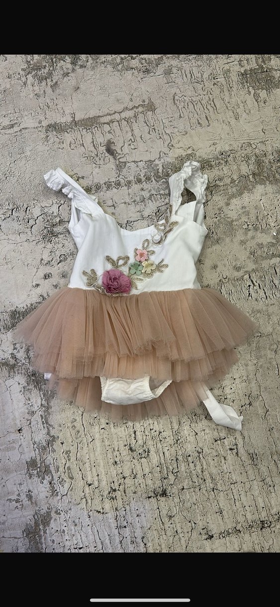 Nakışlı çiçek desenleri ve fırfır detaylı kolsuz, vücuda oturan kız elbisesi. Pastel renkli tül etek bohem tarzı yansıtıyor.
