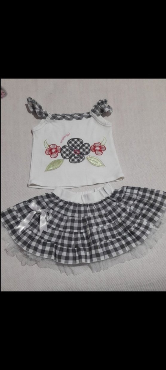 Nakışlı çiçek desenli, fırfırlı kareli etek üst penye alt kareli kumaştır tertemiz çok fazla giyilmedi
