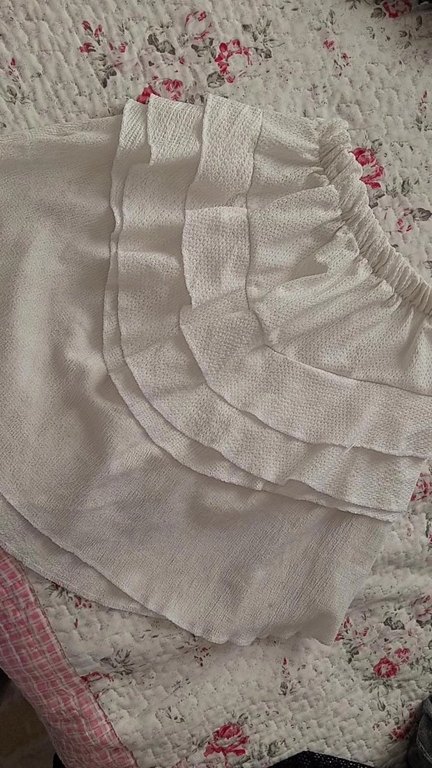 Fırfırlı mini etek. Üzerinde etiketi yok ama beli lastikli olduğu için s-m giyen kişilere rahatlıkla olur. (butikten almıştım marka temsili)