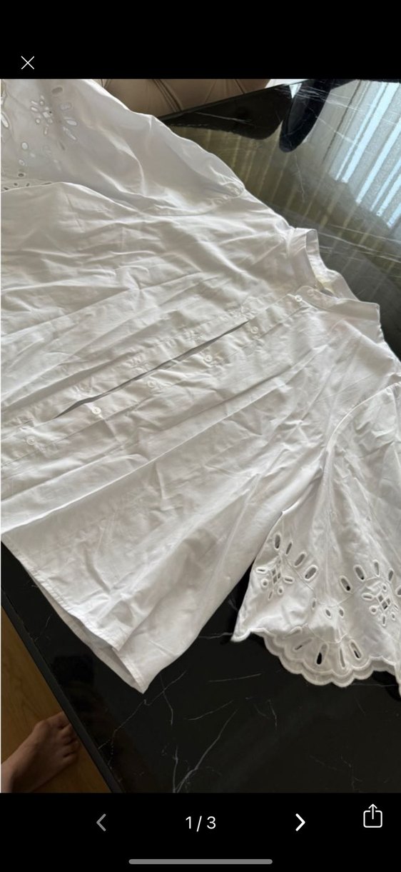 Nakış detaylı ve fırfırlı kısa kollu beyaz keten bluzu. Rahatlık için salaş kesim ve tekne yaka bulunur. Günlük kullanıma uygun bohem tarzda.