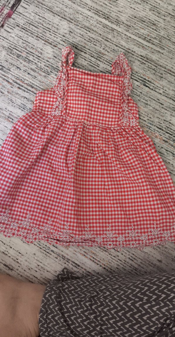 Nakışlı fırfırlı, askısız, bol kesim kız elbisesi. Renkli kırmızı kareli deseni ve bohem tarzı ile öne çıkar.