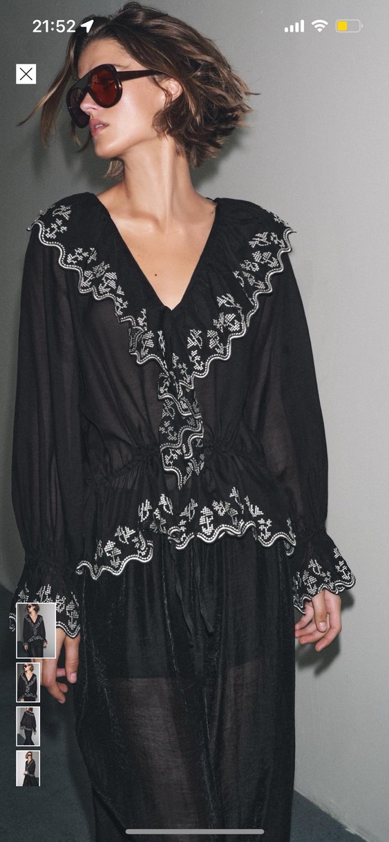 Nakış işlemeli, fırfırlı detaylara sahip siyah uzun kollu bluz. V yakalı, bol kesim ve yumuşak tekstil kumaştan yapılmıştır. Yeni ve etiketli orijinal ürün xs beden ama kalıbı baya büyük s ve m ye daha uygun yine de ölçüleri dikkate alınız