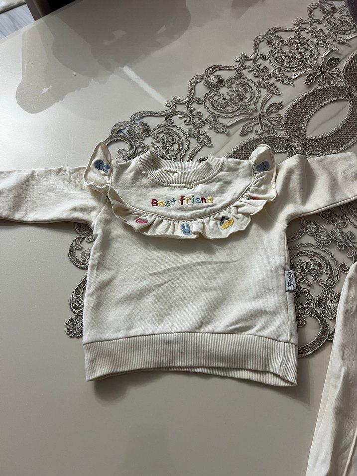 Nakışlı Fırfırlı Uzun Kollu Bebek Kız Takımı
