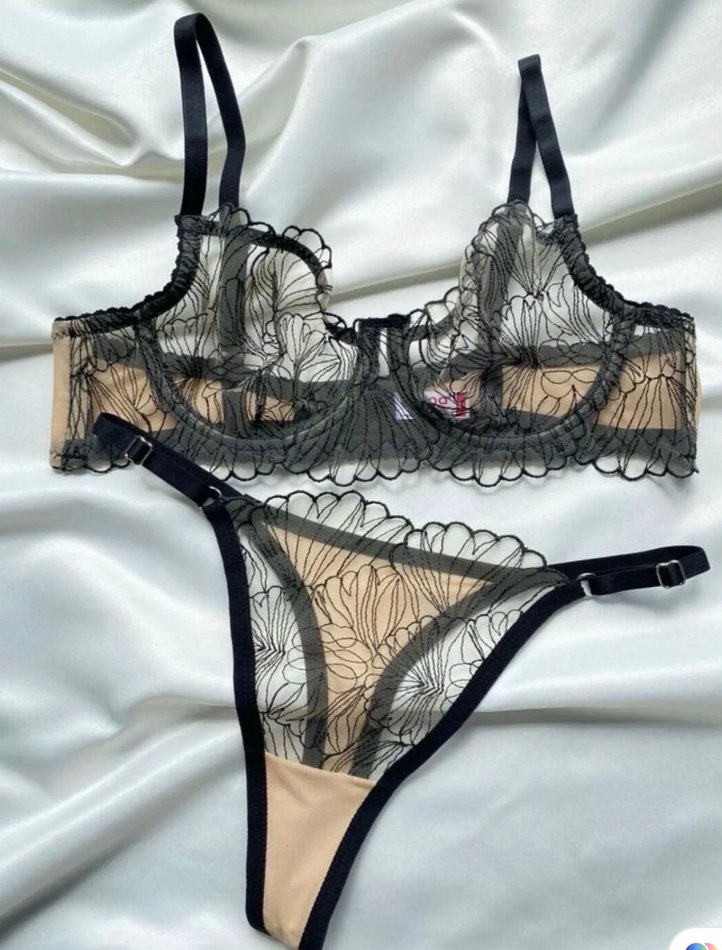 80-85-90-75b-80b-85b-90b bedenleri mevcuttur ♥️Ürünler SIFIRDIR.Hızlı ve gizli kargo Hijyenik | Nakışlı koyu detaylara sahip bej sütyen takımı, gotik tarzda ve Paris etkili. Midi uzunlukta sütyen ve uyumlu nakışlı tanga içerir.