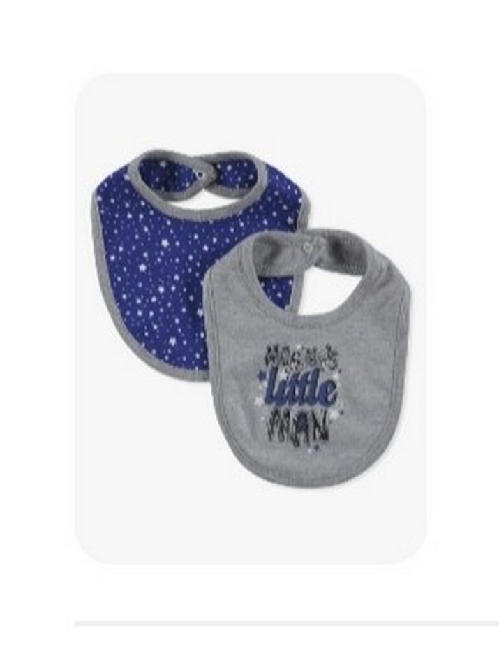 Nakışlı desenli gri bebek önlüğ yumuşak kumaş. Mavi yıldız desenli ikinci önlük dahildir.