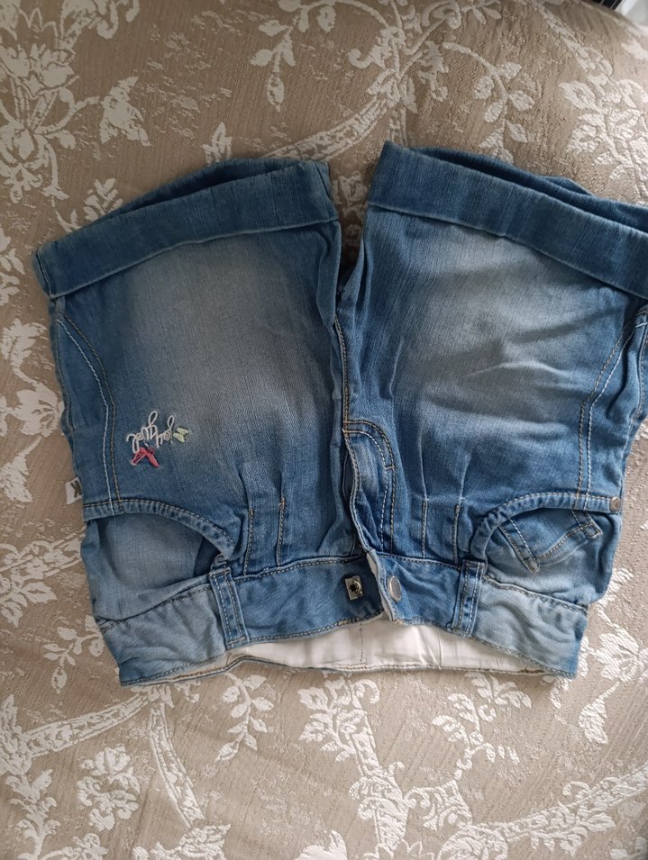 Nakışlı Gri Denim Düğmeli Kız Şortu
