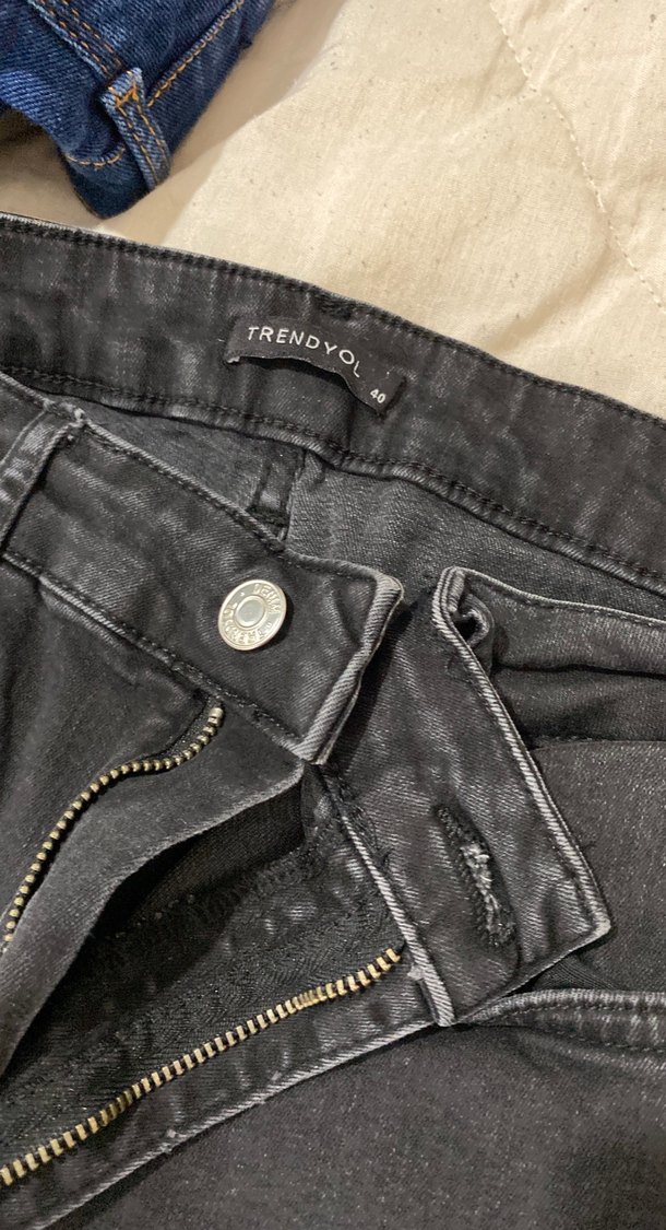 Nakış detaylı, fermuarlı ve fitted kesim gri denim kadın jean. Midi boy ve günlük kullanıma uygun normcore tarzda rahat bir model.