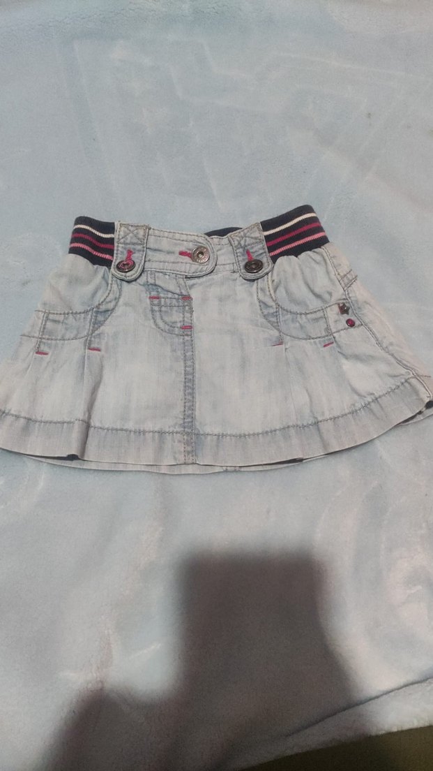 Gri renkte, düğmeli ve nakışlı desenlere sahip, bol kesim denim kız çocuk eteği. Sokak modasına uygun şık bir seçenek.