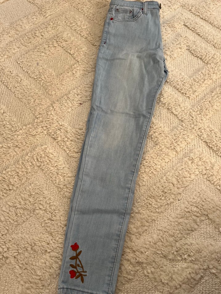 Nakışlı Gri Kadın Denim Pantolon