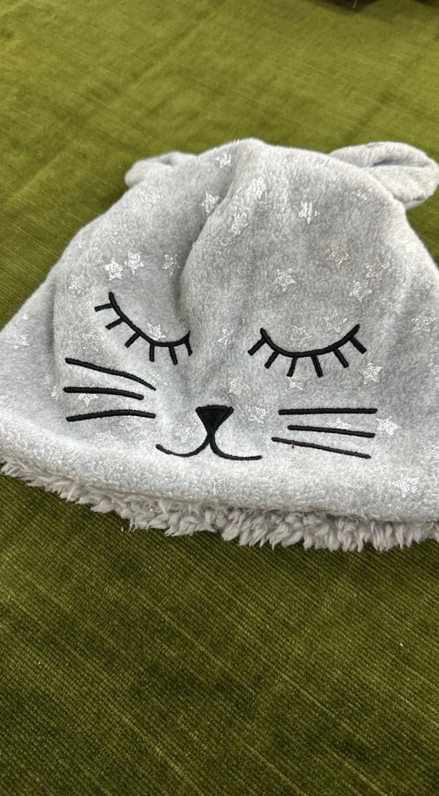 GAP marka. Nakışlı Gri Kedi Desenli Kürklü Kedi Kıyafeti