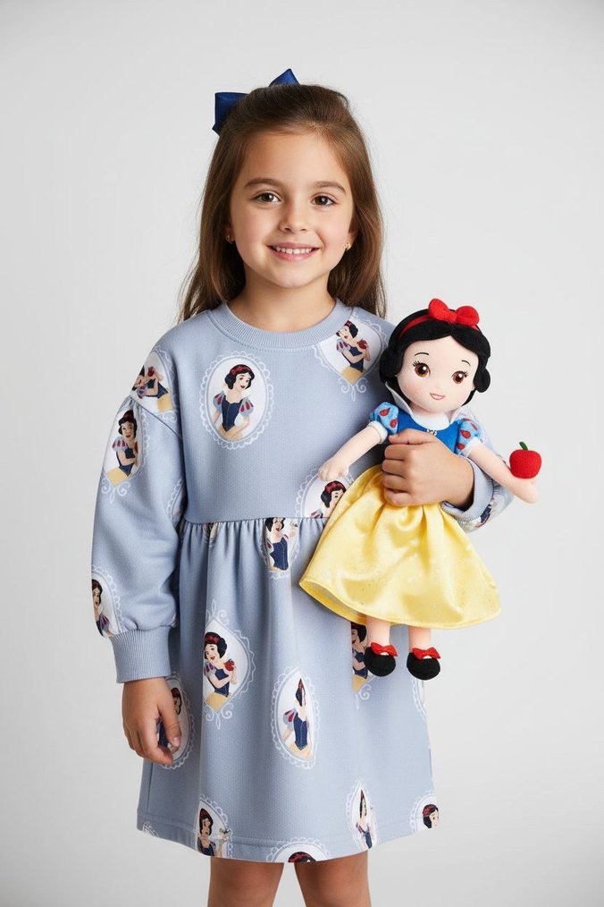 Nakışlı Gri Kız Çocuk Elbisesi