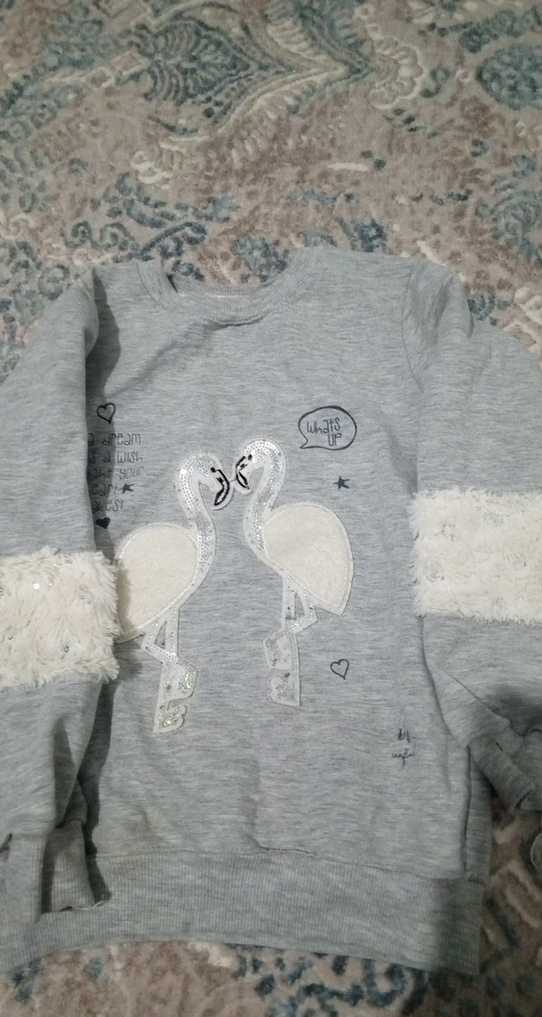 Gri renkli, uzun kollu, örgü manşetlere sahip ve önünde nakışlı flamingo deseni bulunan bol kesim sweatshirt. Bisiklet yaka, günlük sokak stili için uygun.