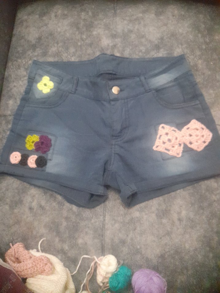 Nakışlı çiçek desenleri ve düğmeli kapaması olan, trend sokak stili için uygun, fitted gri mini denim şort.