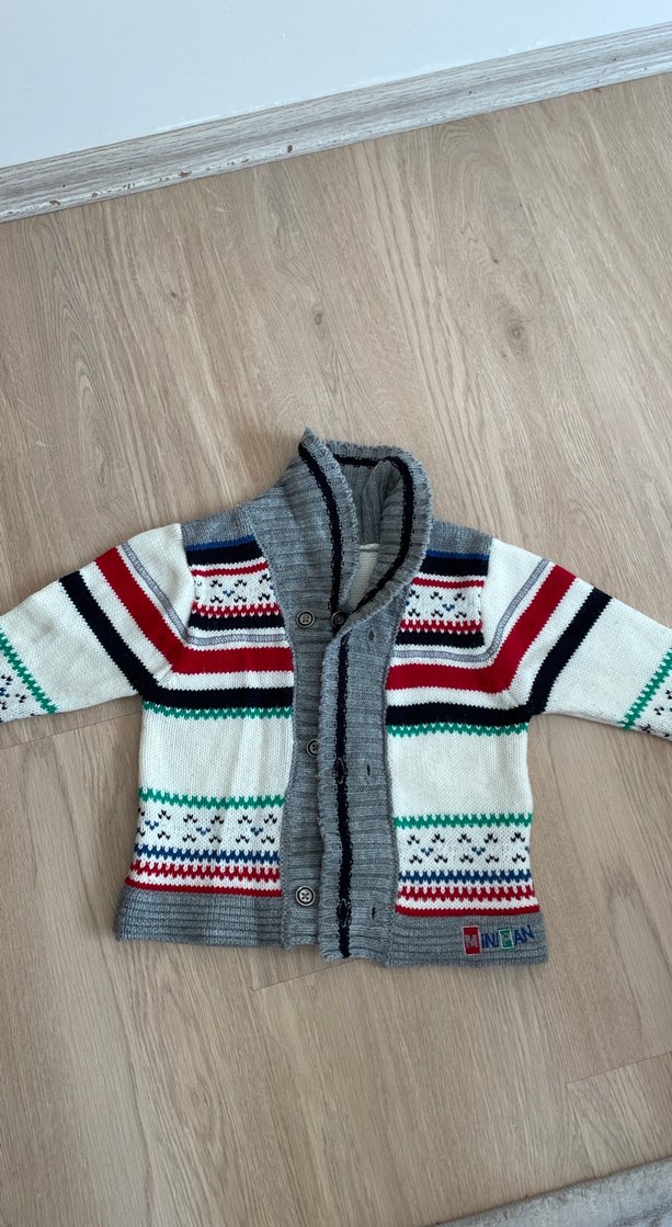 Nakışlı Gri Örgü Erkek Çocuk Hırka