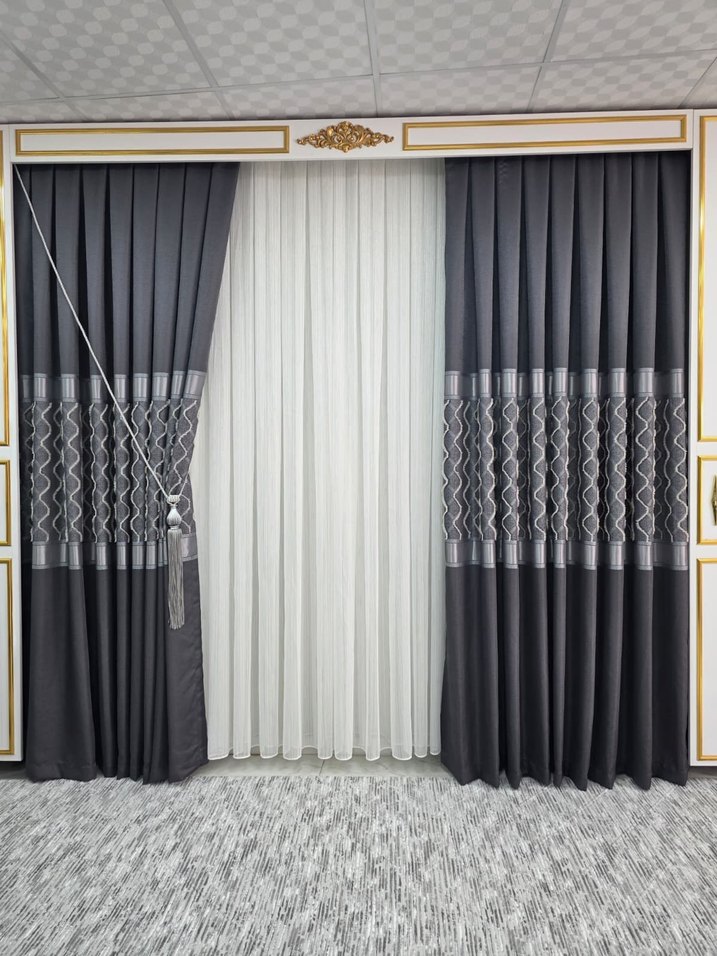Nakışlı Gri Perde