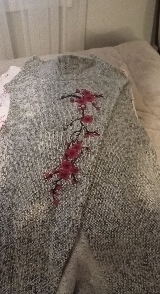 Nakışlı Gri Triko Kadın süveter. Ürün hiç kullanılmadı.