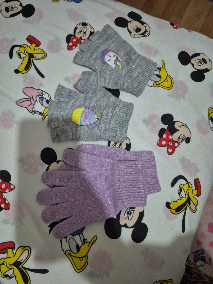 Nakışlı desenlere sahip gri triko kız eldivenleri, trend sokak stiliyle günlük kullanıma uygundur.