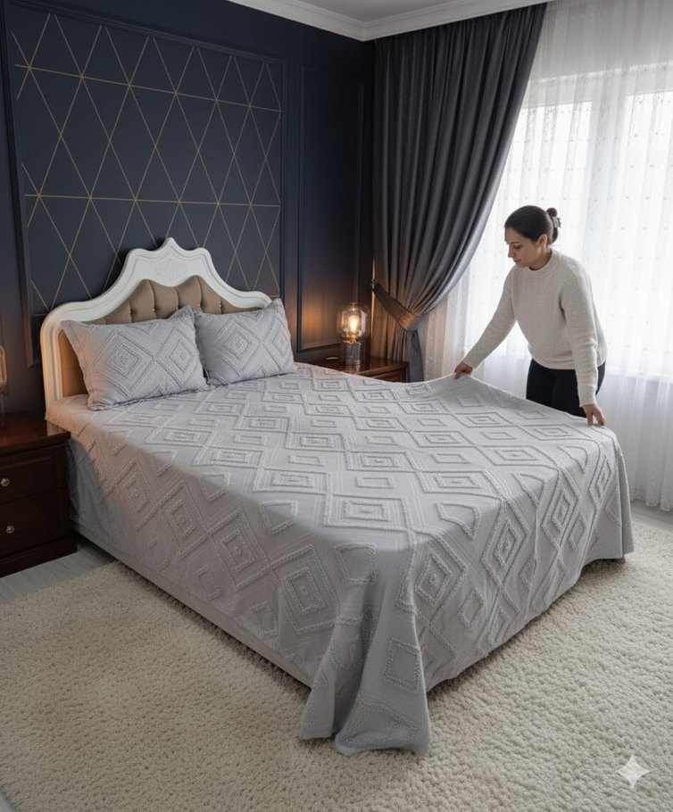 ✨ZİKZAK MODEL✨ AÇILIŞA ÖZEL HEDİYESİYLE KALİTELİ VE ŞIK GÖRÜNTÜSÜ İLE HER ZEVKE HİTAP EDER. DÖKÜLME SOLMA OLMAZ. KENDİNDEN PONPONLU DOKUMA KUMAŞTIR. 30 DERECEDE HASSAS PROGRAMDA YIKANABİLİR. TEK KİŞİLİK 160*240 ölçü 1 Adet yastık kılıfı ️Fiyatı 1690 ₺ ÇİFT KİŞİLİK 240*270 ölçüsü 2 Adet yastık kılıfı ️Fiyatı 1990 ₺ ️Renk: EKRU ÜCRETSİZ KARGO