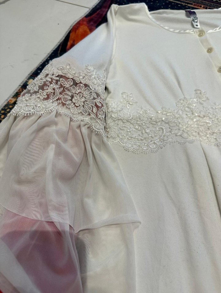 Nakışlı güpürlü Beyaz Uzun lohusa gecelik sabahlık takımı