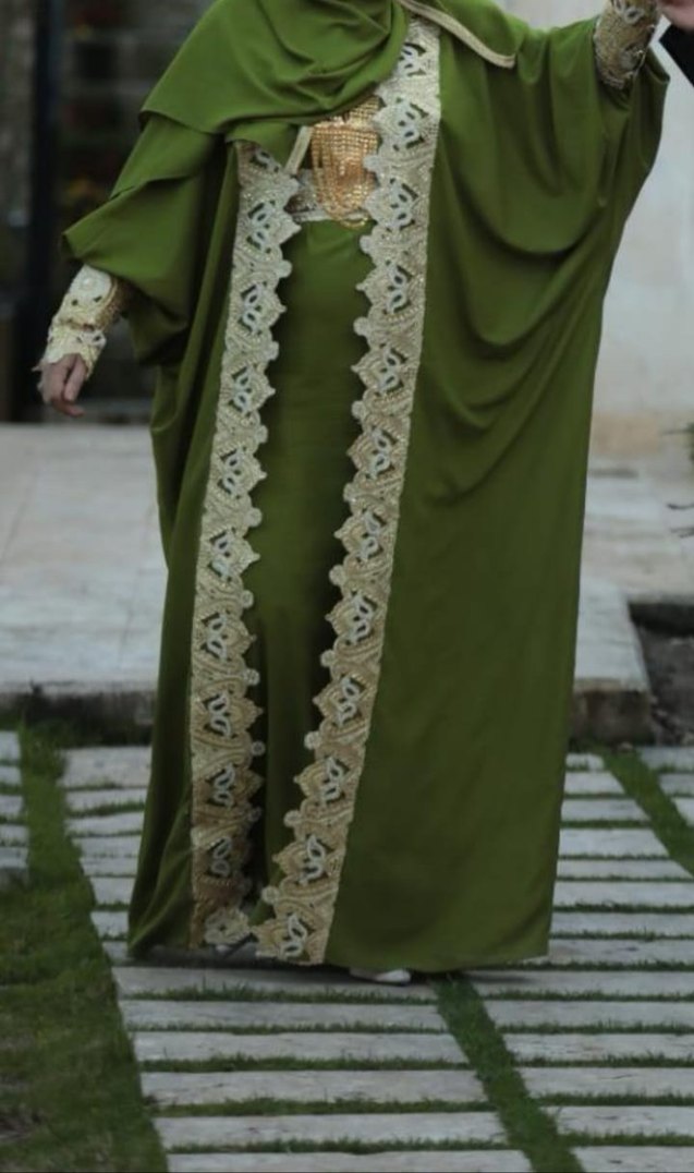 Nakışlı Haki Kadın Uzun Tesettür abiye