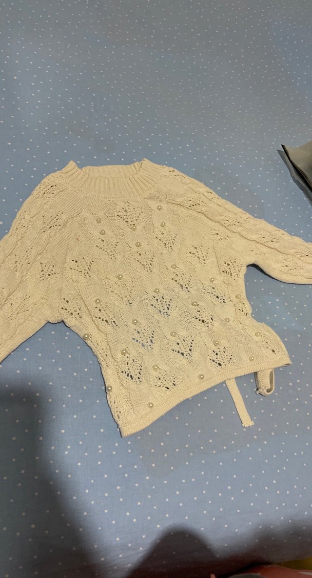 İncili işlemeli sırt dekolteli Small beden kazak çok şık bir parça butik ürünüdür bir kez giyildi