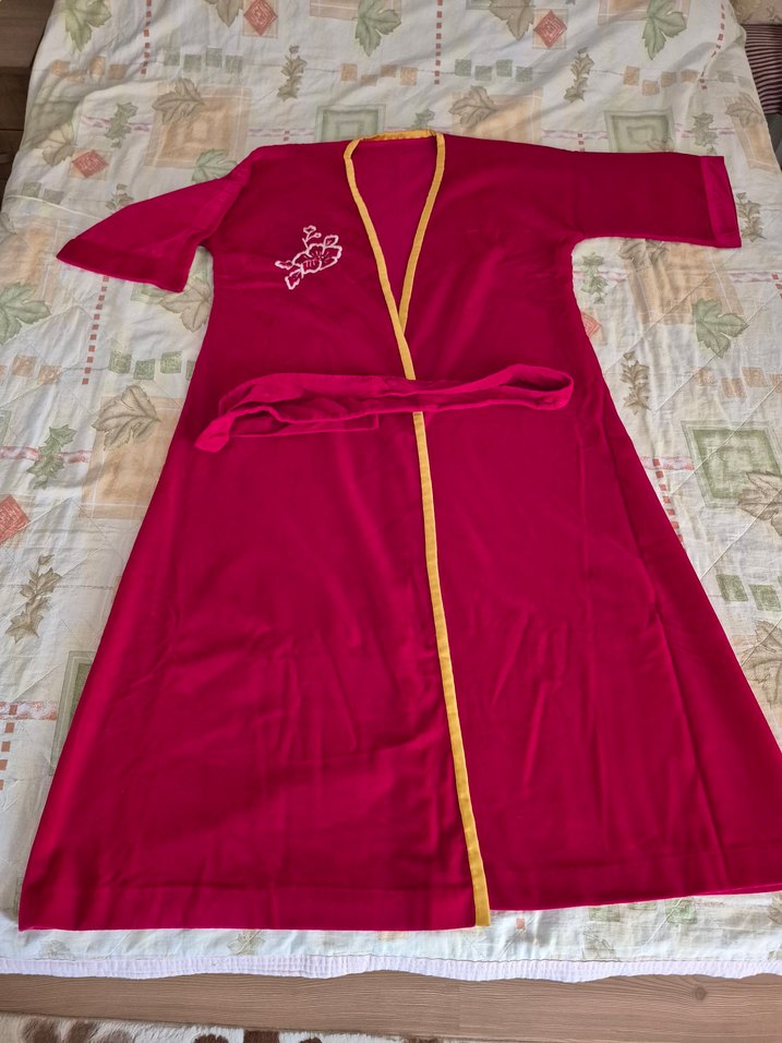 Bordo renkli kadın nakışlı, detaylarla vintage ve bohem tarzı. Boy 1.25, koltuk altından genişlik 60. Yıllar önce dikilmiş ama hiç kullanılmamış.