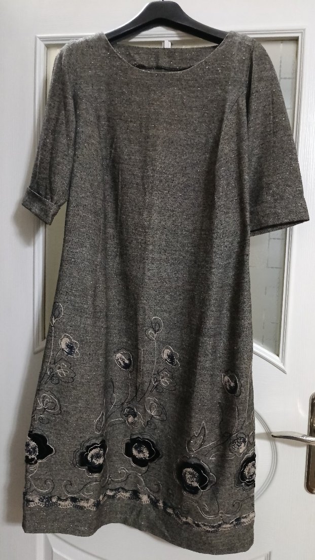 Nakışlı Kahve Diz Altı Elbise