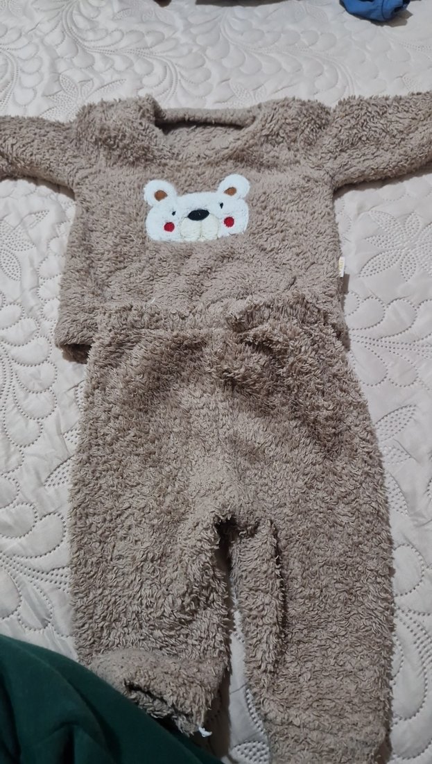 Nakışlı ayı deseni bulunan, yumuşak ve sıcak kahverengi çocuk battaniyesi.
