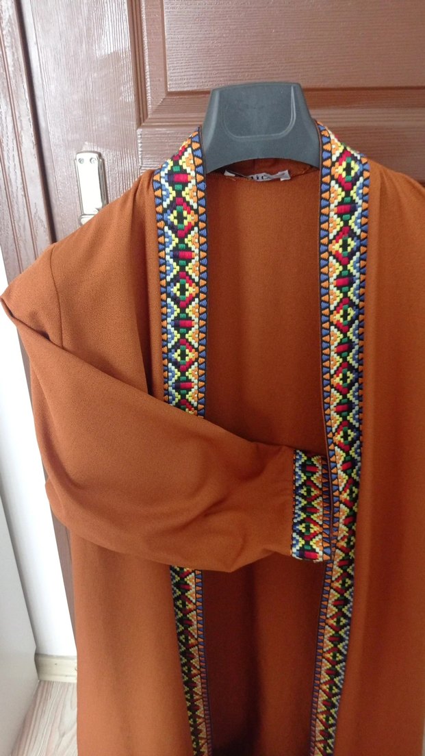 Nakışlı Kahverengi/kiremit Uzun Kimono