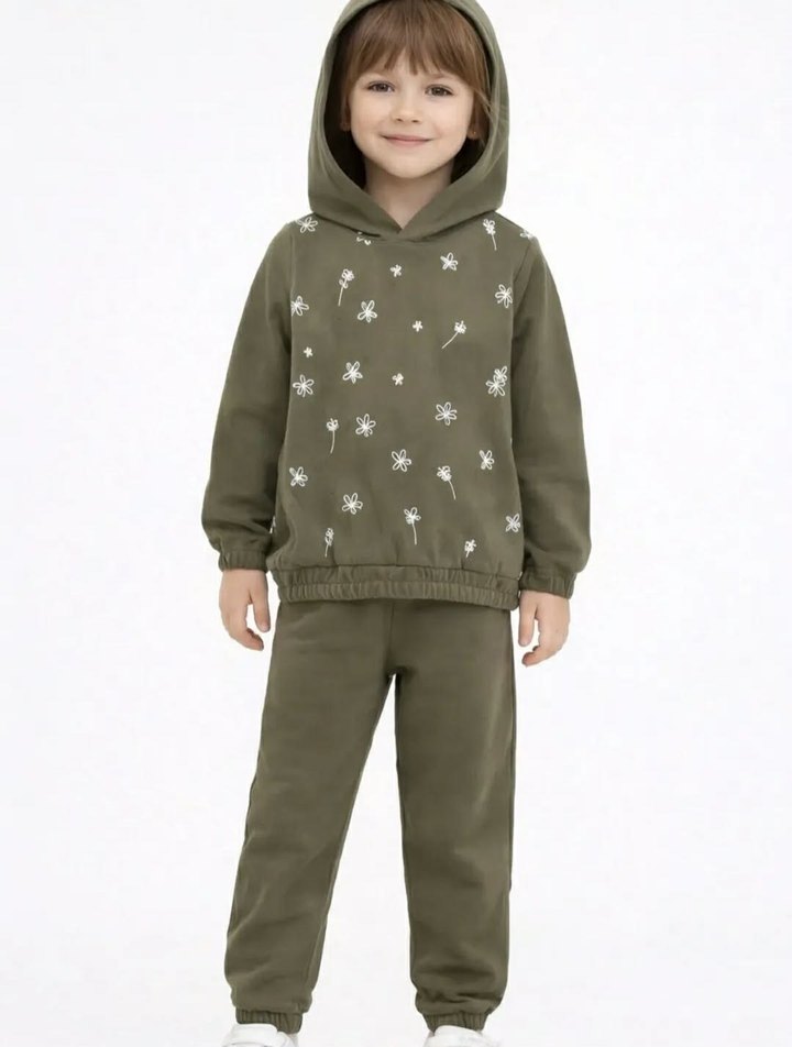 Nakışlı Kapüşonlu Kız Çocuk Eşofman Takımı