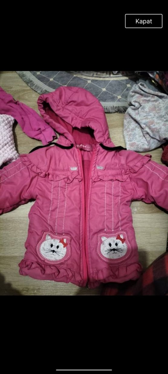 Fermuarlı ve kapüşonlu, pembe renkli kız çocuk montu. Yumuşak ve sıcak kumaştan, ceplerinde renkli nakışlı kedi desenleri bulunur.