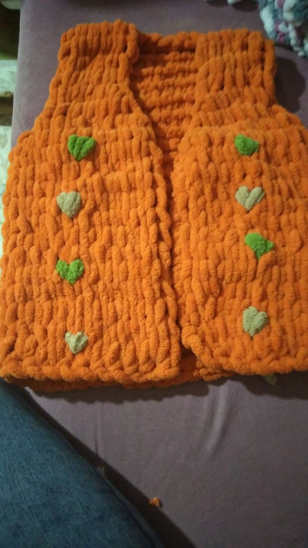 Yumuşak örme kumaştan, kolsuz, ve nakışlı renkli kalp desenlerine sahip, bohem tarza uygun, vücuda oturan kız yeleği. [el emeği kendim ördüm]