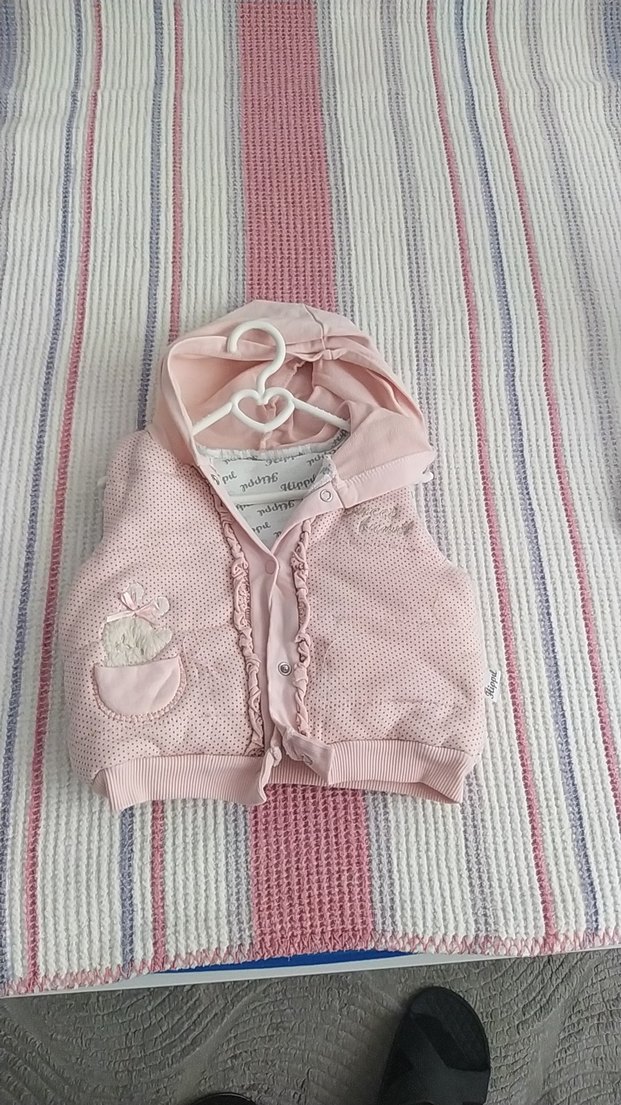 Fitted kesim, kapüşonlu pembe örme kız yeleği nakışlı detaylarla şık ve rahat bir sokak stili sunar. Kolsuz tasarımı katmanlama için uygundur.
