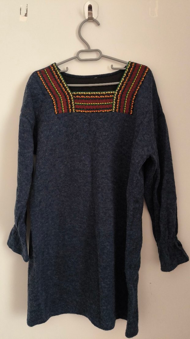 Kadın tunik kazak kalın yün kumaşı L-XL bedeni uyumlu. Japonda aldım, dar geldiği için satıyorum, hiç kullanılmamış. Iki kol arası 53cm uzunluğu 84cm
